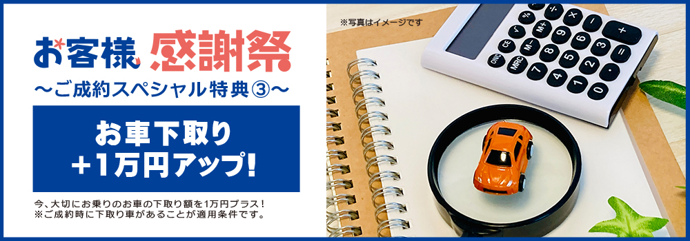 ご成約特典③大切にお乗りのお車の下取り額を1万円プラス!