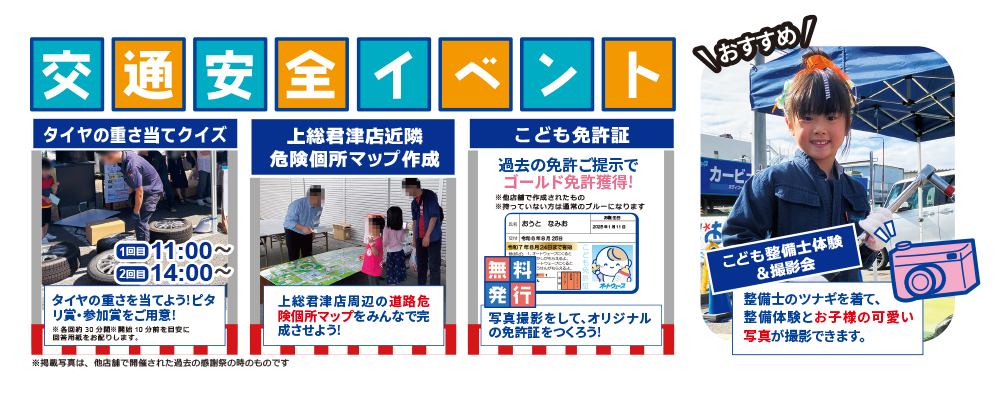 交通安全イベントや、ガラポン抽選会、野菜詰め放題、縁日など無料で参加できるイベントをたくさんご用意しました!ぜひ上総君津店までお越しください。