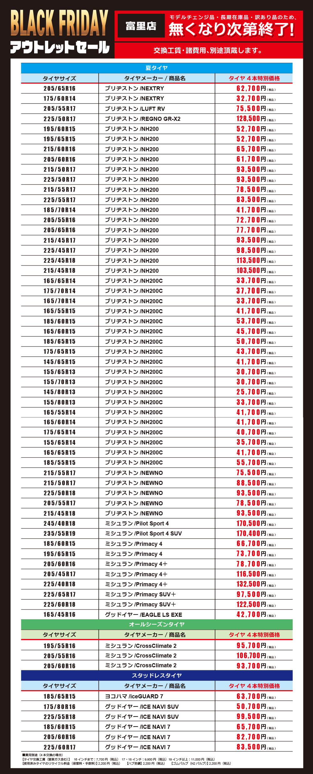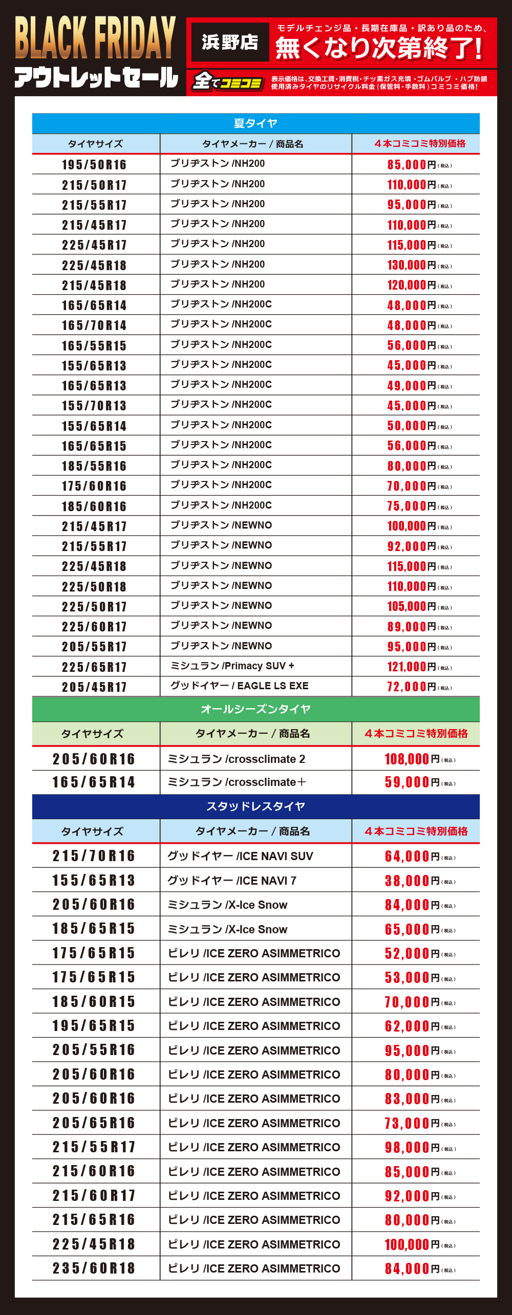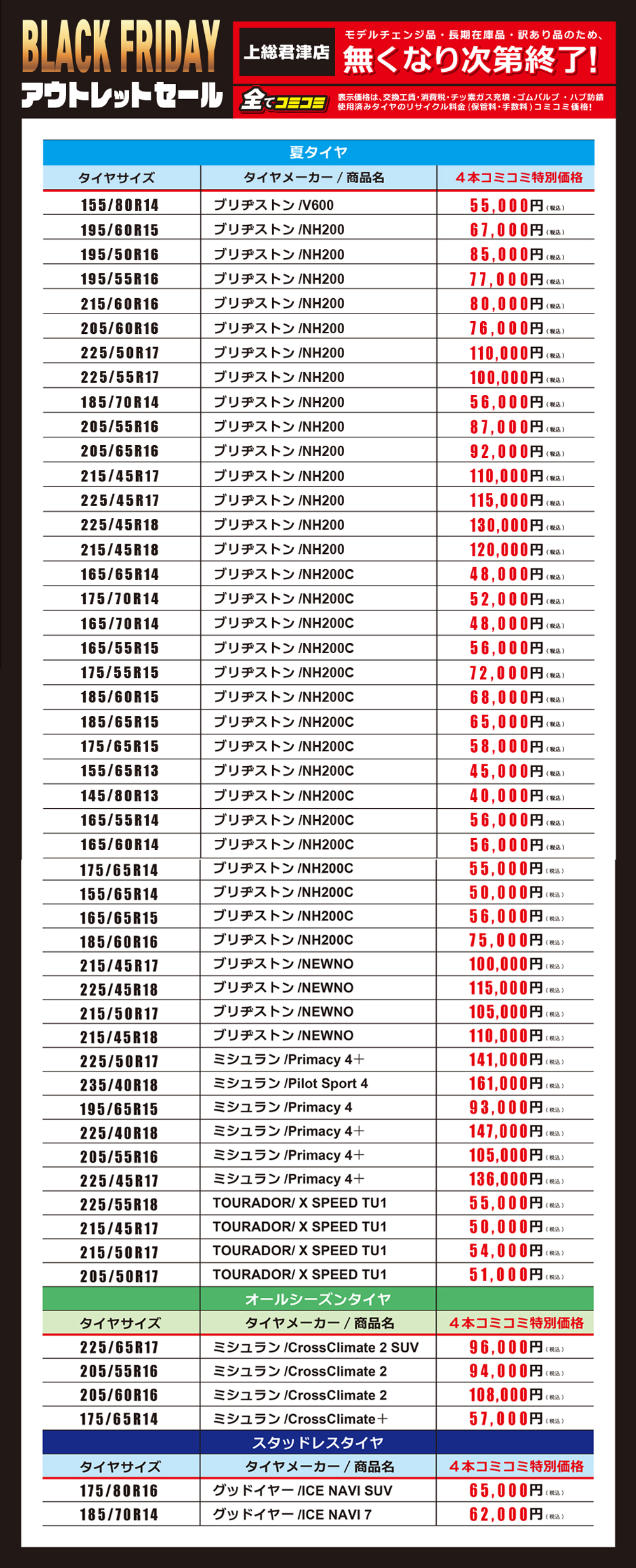 年に一度の大チャンス!ブラックフライデー【タイヤアウトレットセール】開催!