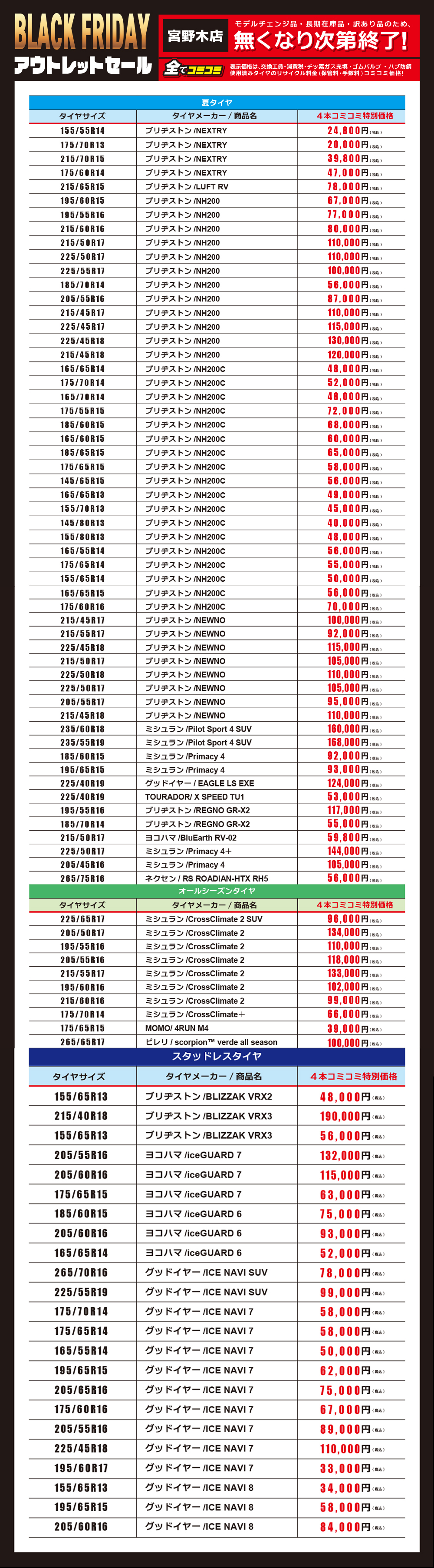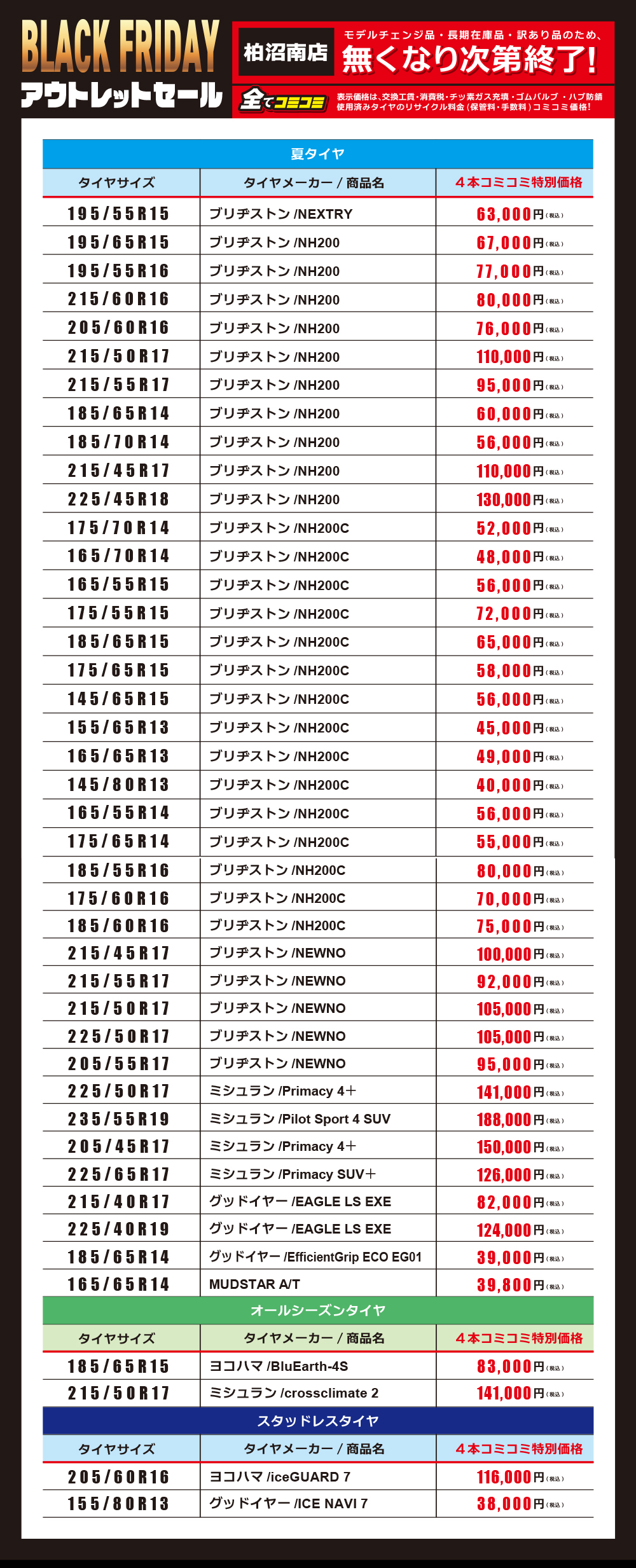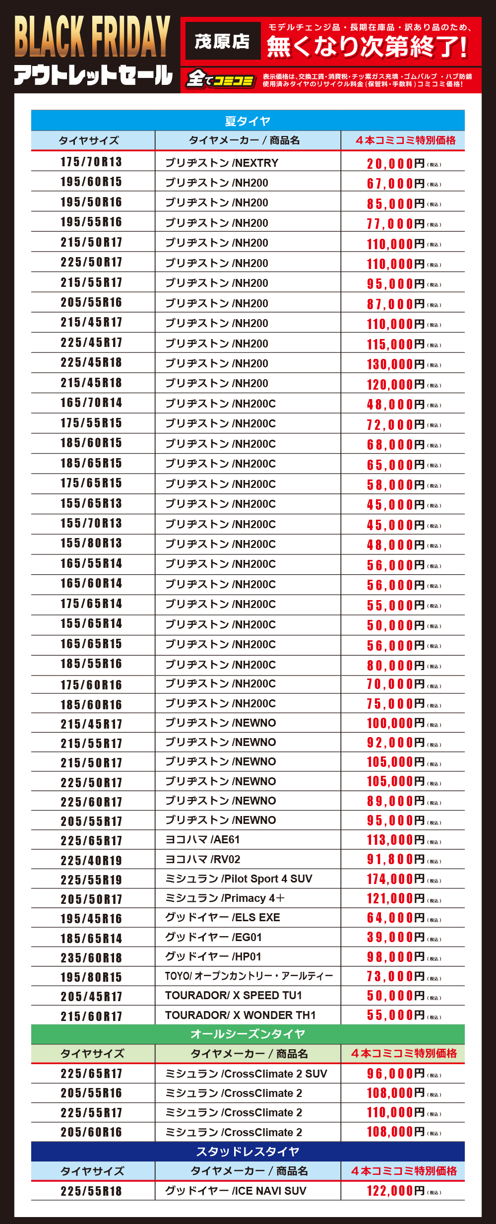 年に一度の大チャンス!ブラックフライデー【タイヤアウトレットセール】開催!