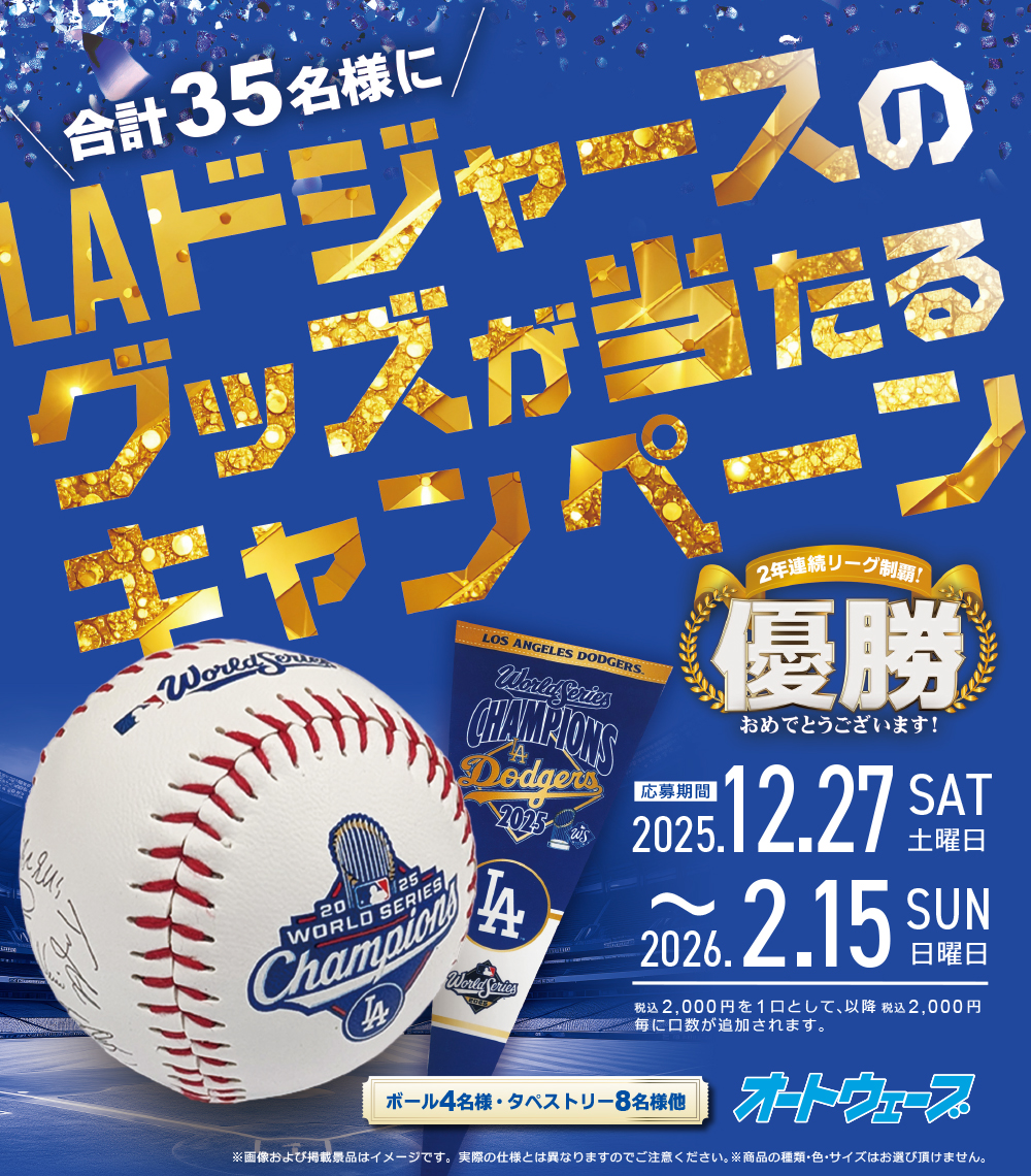 新たにアメリカより直輸入したドジャースの最新公式グッズを取り揃えて、『LAドジャースのグッズが当たるキャンペーン』再開します!