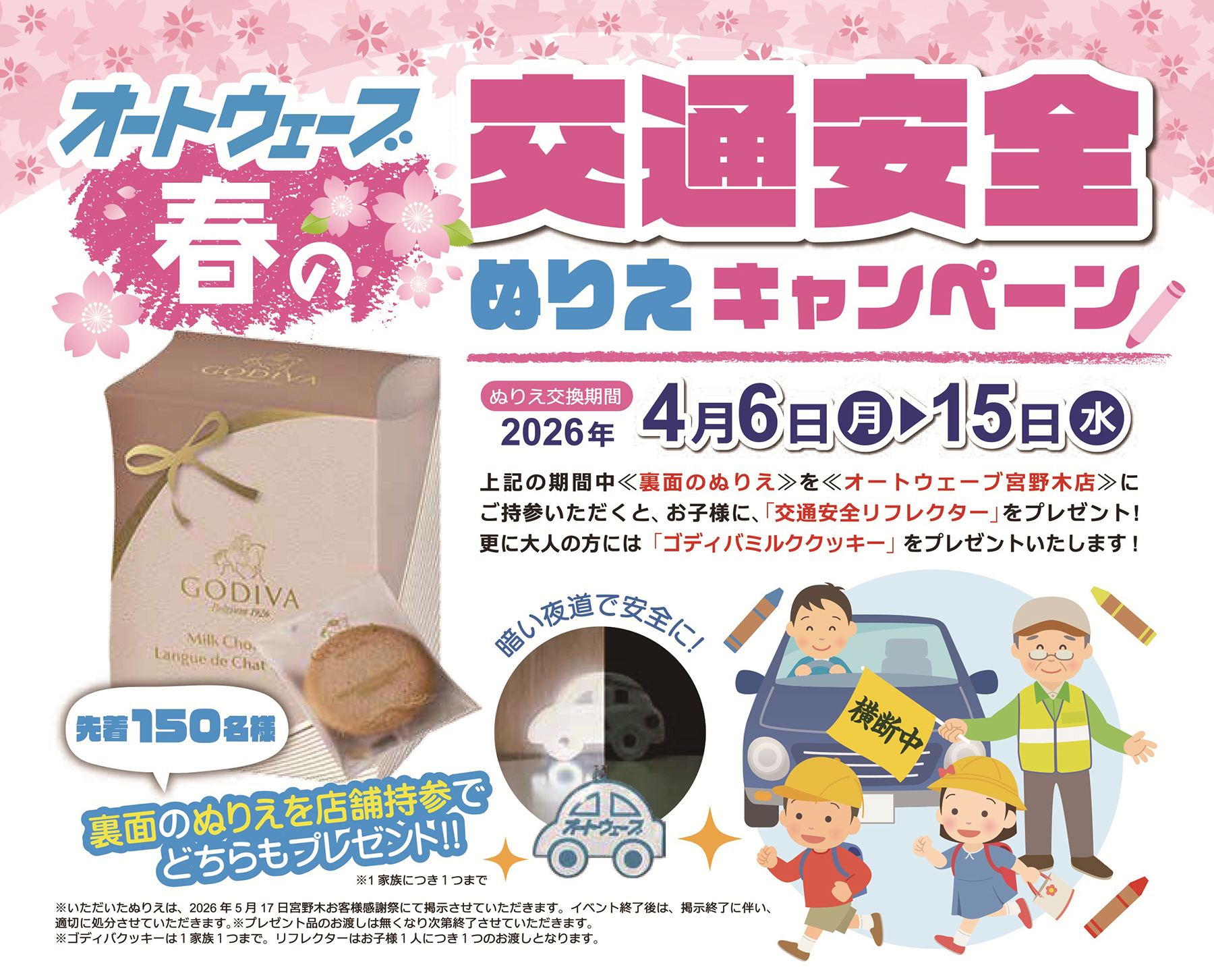 交通安全ぬりえキャンペーン《交通安全リフレクター・GODIVAミルククッキー 》プレゼント