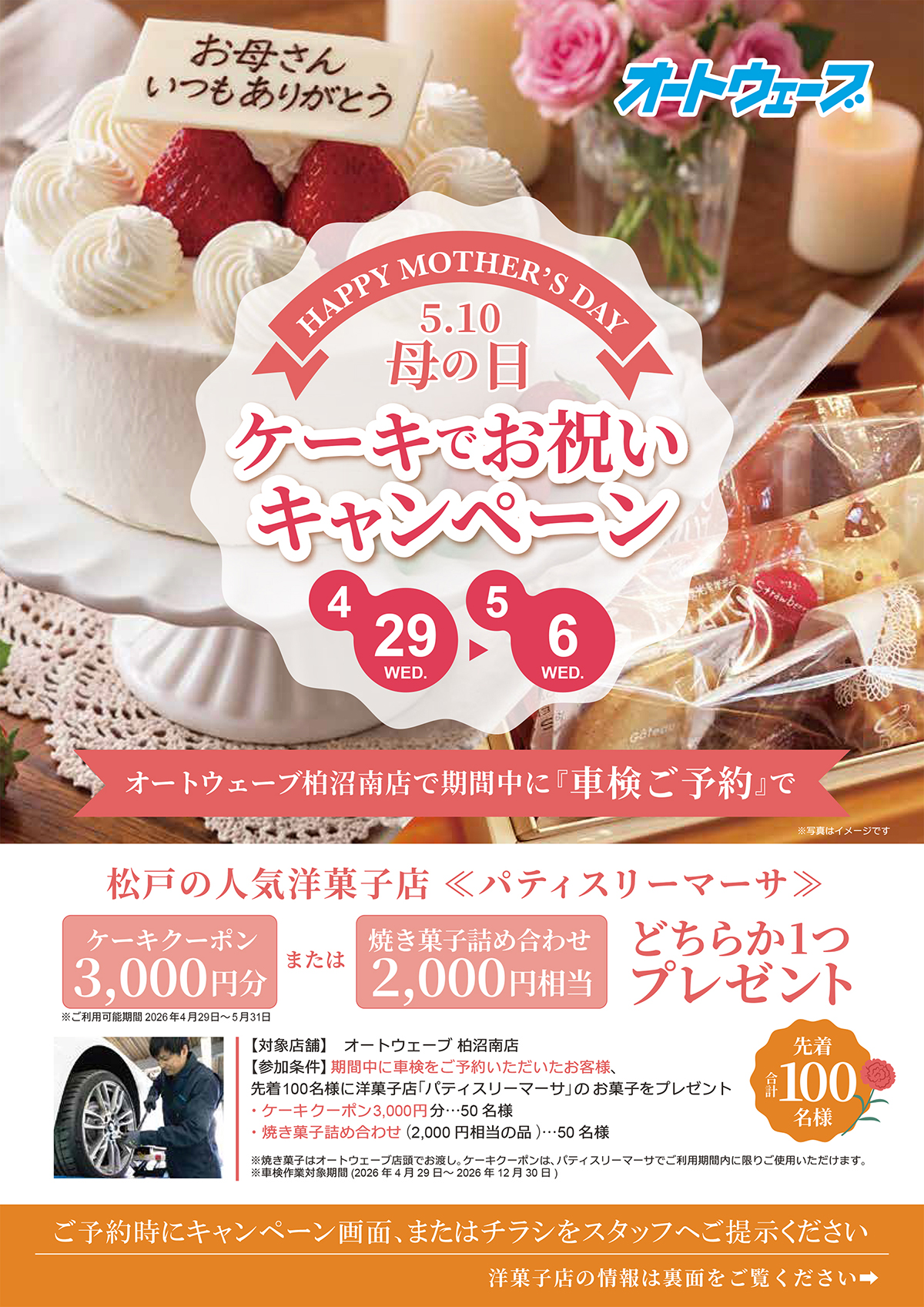 柏沼南店にて車検をご予約いただいたお客様へ、特別なプレゼントをご用意しました。