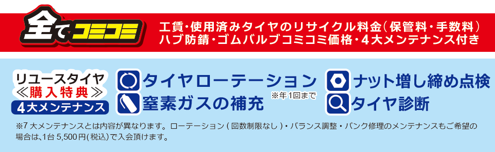 その際に取り外した使用歴の短い純正装着タイヤを、廃棄せず、資源の有効活用と環境配慮の観点から、リユース品としてお求めやすい価格で販売します。