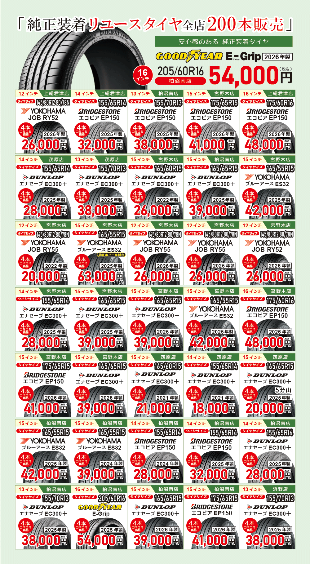 エコタイヤ(リユースタイヤ) 全店200本販売!