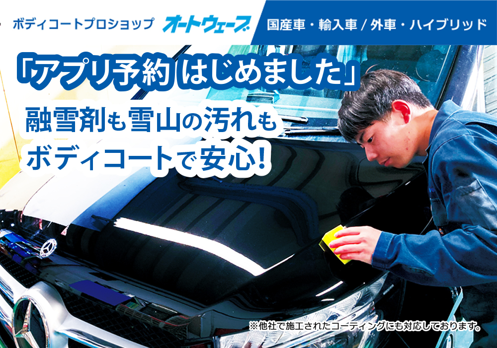 - アプリ予約はじめました。融雪剤も雪山の汚れもボディコートで安心!