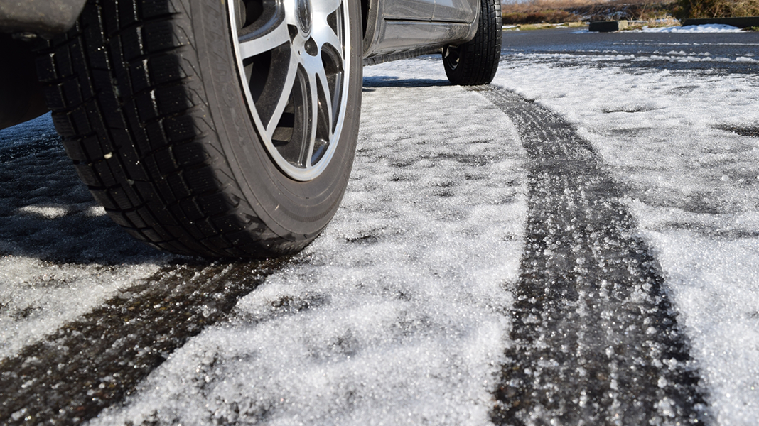 スタッドレスタイヤだから大丈夫と思っていても、溝が減っていたら危険です。走行前にタイヤの溝を確認しましょう。