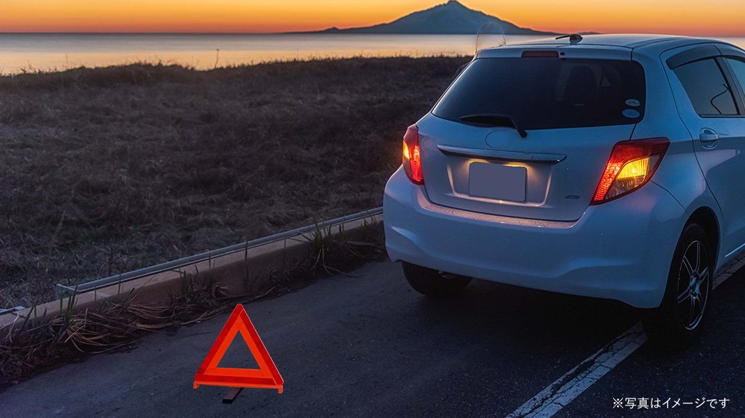※車載の義務はないものの、万一のトラブルに備えて、三角表示板(停止表示板)は常に車に装備しておくようにしましょう。