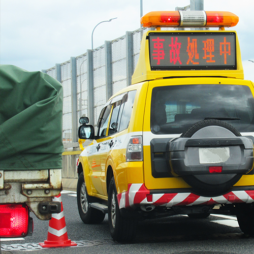 高速道路で事故や故障によりやむを得ず停車した場合は、道路交通法第75条の11により、後続車に危険を知らせるための停止表示器材(三角表示板など)を表示する義務があります。