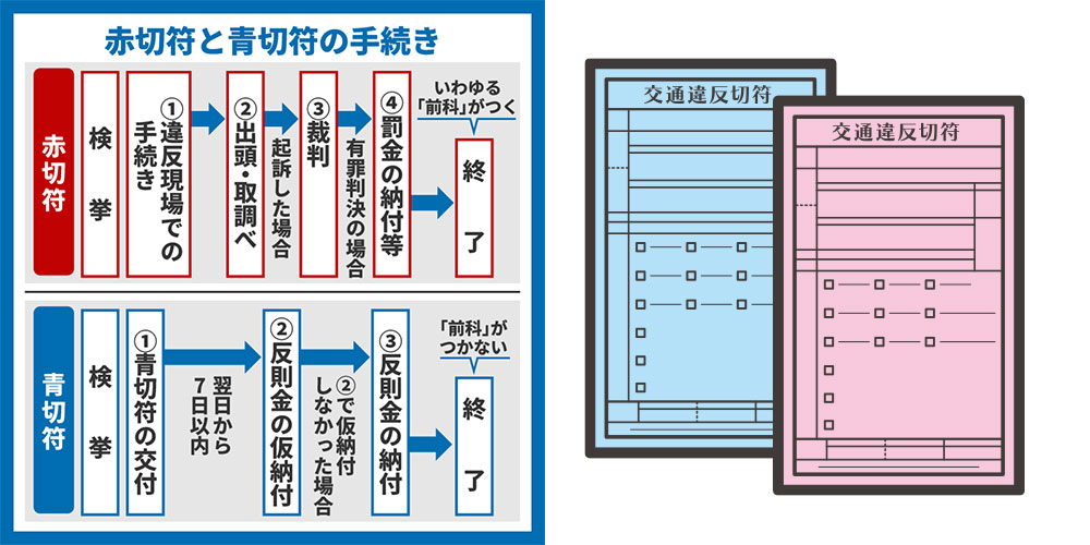 青切符は、赤切符と比べて、簡易な書類手続きとなり違反現場で迅速に処理でき、反則金を納付すれば、取調べや裁判を受ける必要がなく、前科もつかないため、時間的・手続き的な負担が軽減されます。