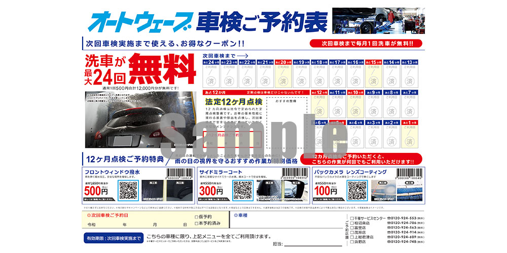 長らくご愛顧いただいておりました車検実施特典「洗車無料サービス(次回車検満期日まで毎月1回洗車無料)」につきまして、洗車機サービスの提供終了およびプリペイドカード取り扱い終了に伴い、2026年3月31日をもちまして終了させていただくこととなりました。